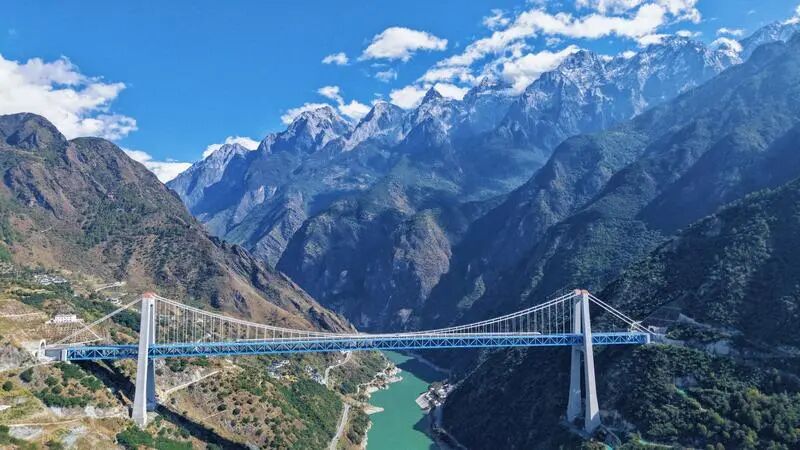 ▲这是11月21日拍摄的虎跳峡金沙江铁路大桥。展望“十五五”,丽香铁路将有力提升民族地区运输服务保障能力,助力区域经济高质量发展。 新华社发 杨紫轩 摄