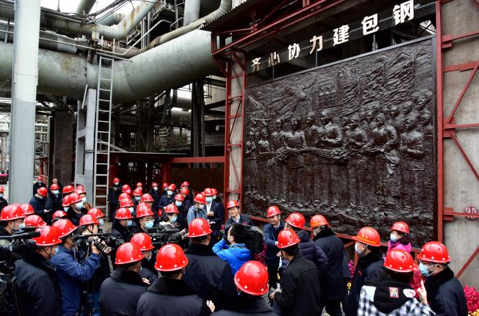 ▲2023年3月,党史学习教育中央宣讲团走进包钢宣讲。包钢集团供图