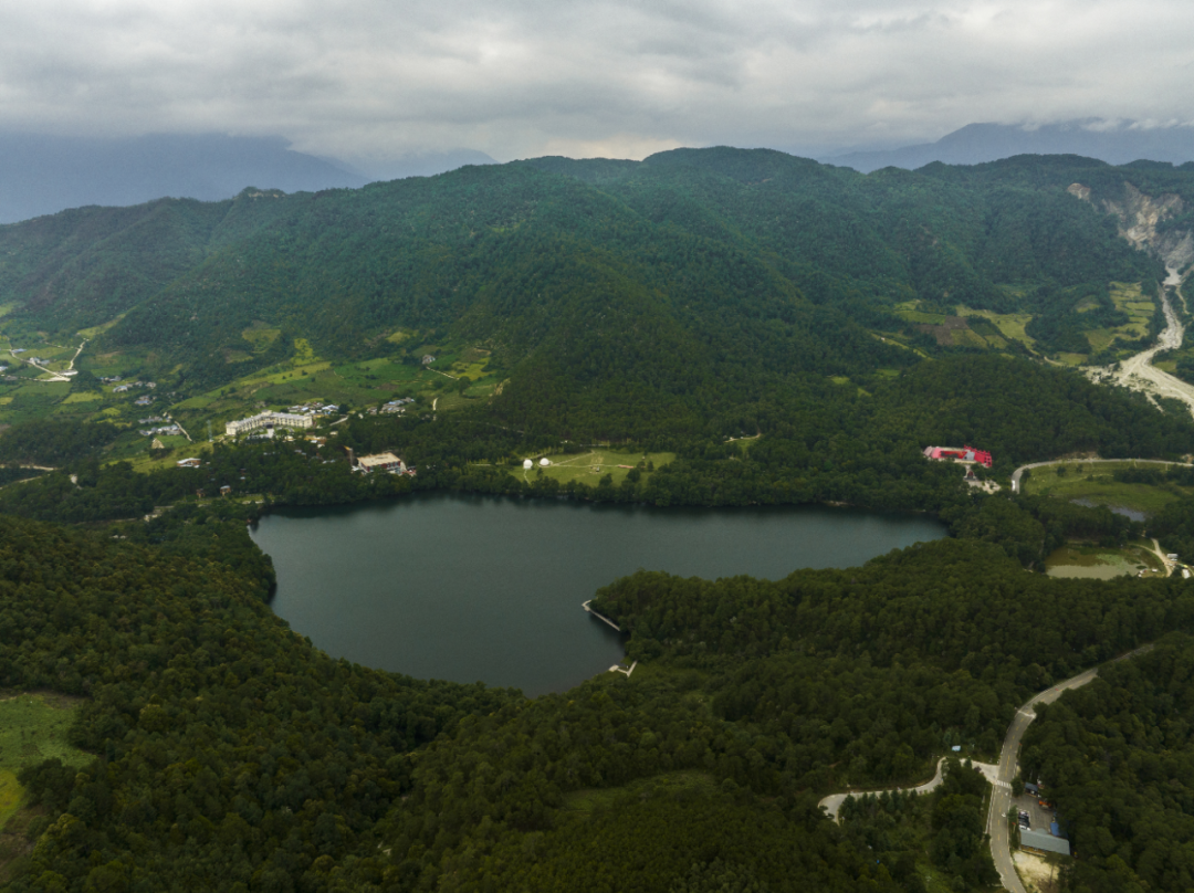 图为彝海结盟景区航拍,后方红色建筑为彝海结盟纪念馆。冕宁县委宣传部供图