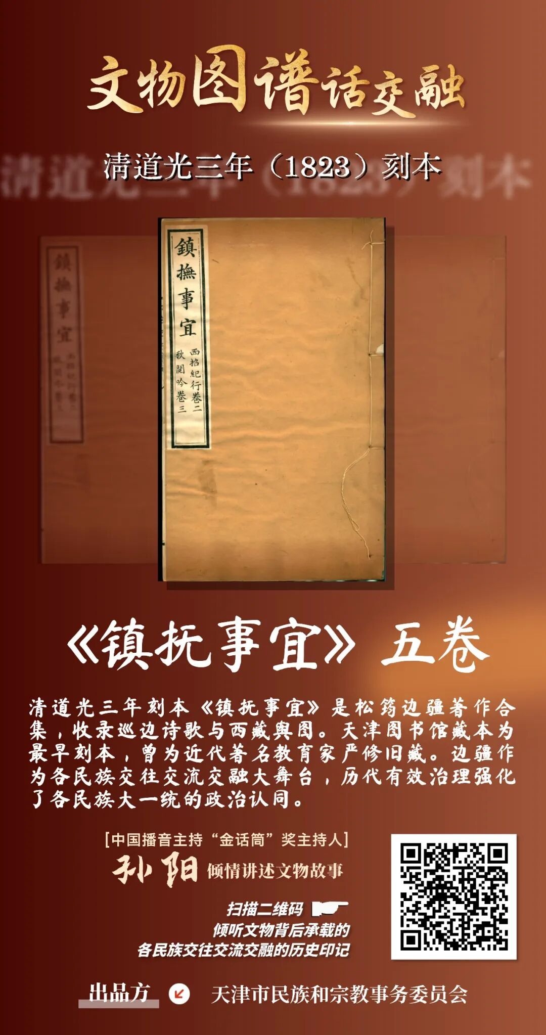 为进一步宣传贯彻落实习近平总书记关于加强和改进民族工作的重要思想以及习近平总书记视察天津重要讲话精神,牢牢把握新时代的文化使命,坚持以文化人、以文惠民、以文润城、以文兴业,在推动文化传承发展上善作善成,市民族宗教委紧紧把握铸牢中华民族共同体意识工作主线,从《中国民族文物图谱•天津市卷》中精选出珍贵文物,制作了23张“文物图谱话交融”为主题的有声海报,生动再现天津各民族广泛交往交流交融的历史故事。