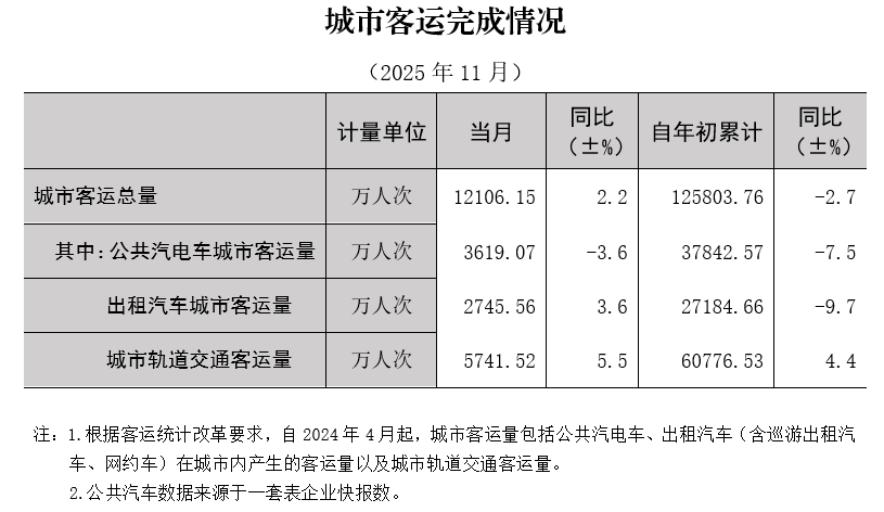 2025年11月份城市客运量