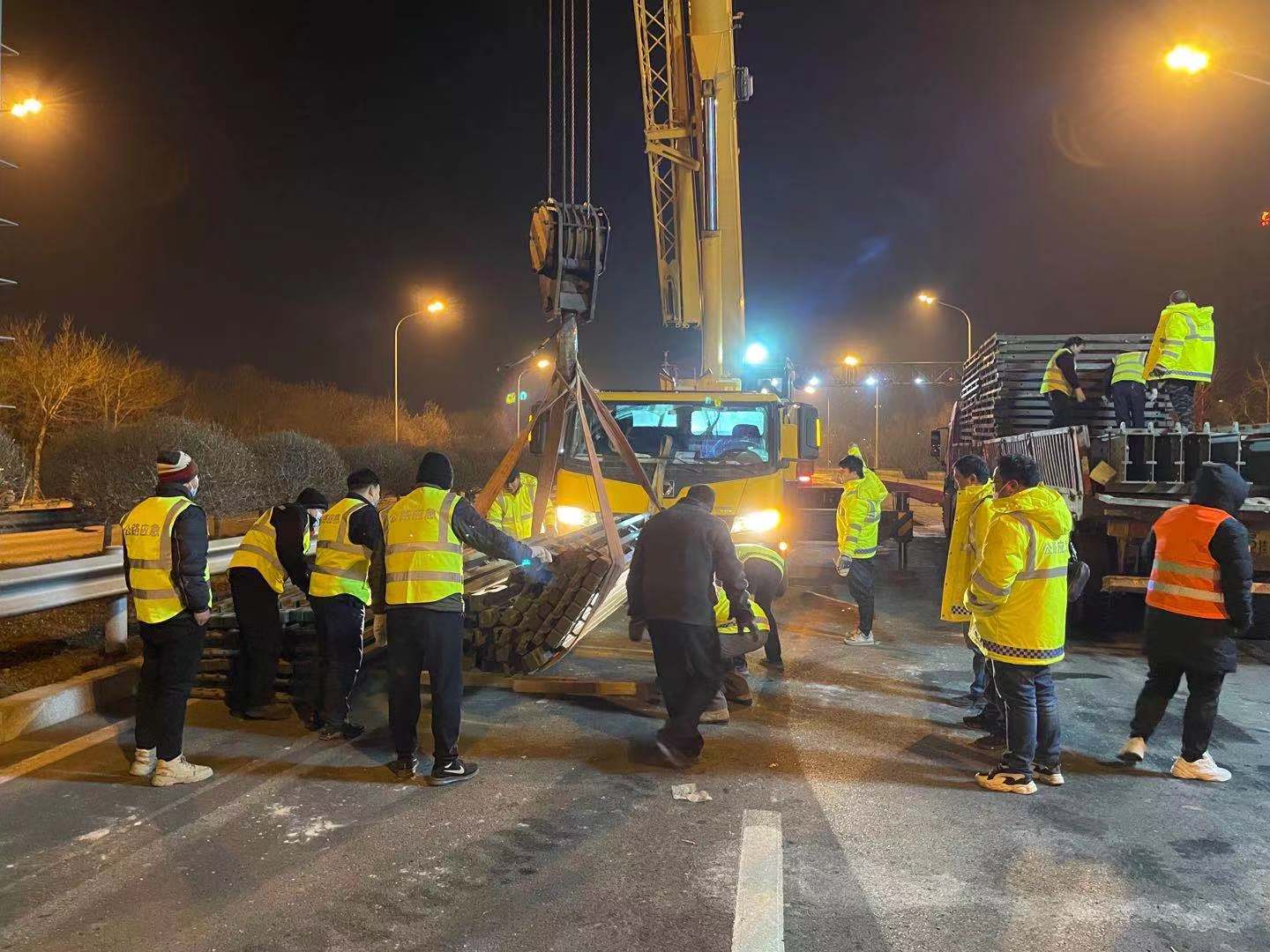 根据上述情况,养护中心高度重视,主要领导及相关负责人第一时间到达下沉路段,组织技术人员进行高程检测明确下沉深度,并要求南水北调配套凌庄水厂供水保障工程项目负责人中心到达现场落实处置措施。为确保该路段的设施运行安全,安排专人进行24小时观测记录,同时调配安全隔离设施和应急抢险设备,做好最不利条件下的应急处置准备工作。经全段面雷达勘测和钻芯检测,确定路基路面沉陷范围和掏空范围,养护中心根据应急预案要求,调派ZB200型公路装配式钢桥对已封闭路段进行搭设。目前各项应急维修处置工作和数据采集工作正在紧张、有序地组织实施。