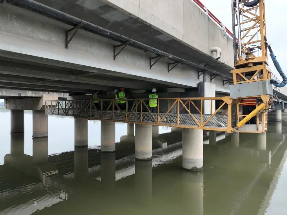 桥梁监测方面,监测组重点对克黄线青龙湾大桥、海滨高速永定新河特大桥开展监测,围绕桥梁技术状况评定可靠性、修复养护效果、永久观测点设置、检查通道状况及通行安全设施五个方面进行了专业、细致的评价。根据反馈,监测组对我市的桥梁养护模式、“津心养护”品牌体系及“四新”技术应用给予了充分肯定,同时指出了我市在桥梁管养工作中存在的不足并提出了专业性的改进建议。