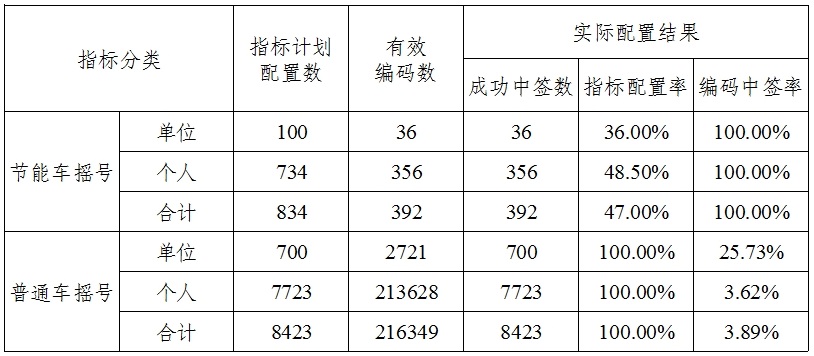 2025年9月天津市小客车摇号配置结果情况表