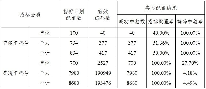 2025年11月天津市小客车摇号配置结果情况表